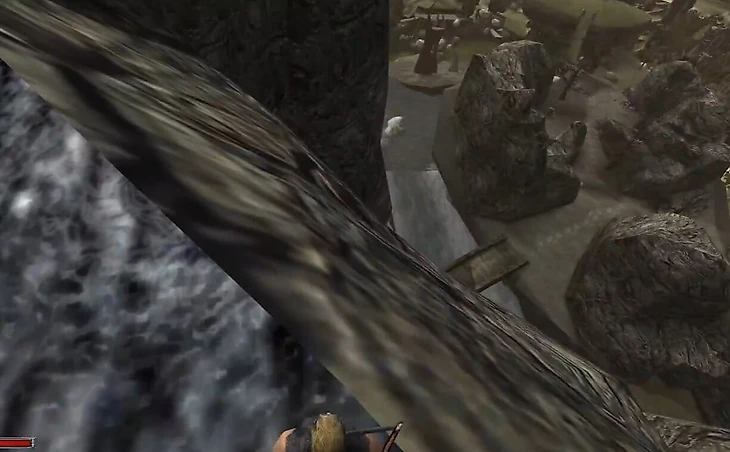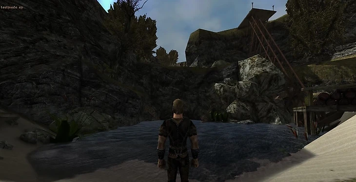 Многие игроки знают о скрытых тайниках в водопадах в «Готике», но вот о скрытой подводной пещере рядом с мостом в Старый лагерь – нет. Находится она напротив ворот в лагерь, ориентируйтесь вот на этот камень.