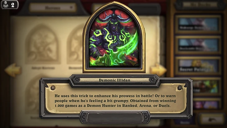 Тем более, я уже проворачивала этот трюк, когда в мете были Шаманы. Из минусов только скука – колода не требует никаких умственных усилий для управления даже на потнейшем пути к легенде, а все игры похожи на одну и ничем не запоминаются. Причем после этого мне предстоит пройти тот же путь для получения лучшего портрета игры – демонического Иллидана за 1000 побед на Охотнике на демонов.