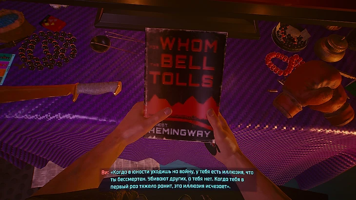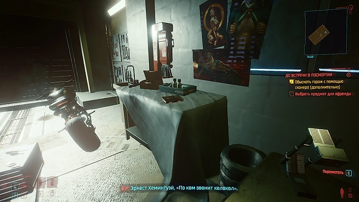 Войдите в гараж и сканируйте все предметы, что видите – у большинства из них есть предыстория. Выбирайте тот, что вам по душе – например, книгу Хэмингуэя.