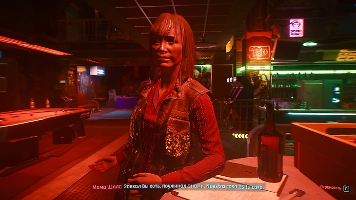 После выполнения задания «Пропуск в Высшую лигу» вам предоставят выбор, куда отвезти Джеки – к семье или в клинику Виктора. Если вы выбрали первое, то вскоре начнется церемония прощания с вашим другом. Отправляйтесь в бар «Эль койоте кохо» и поговорите с Мамой Уэллс. Она даст вам ключи от гаража сына.