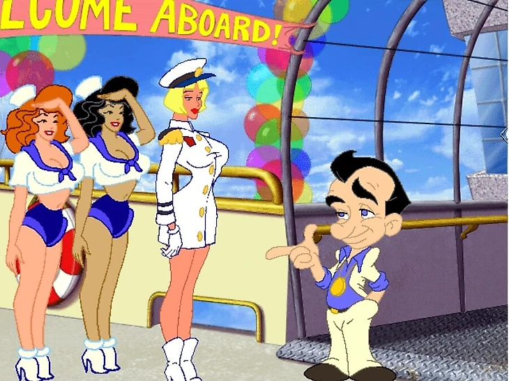 А в седьмой, последней части от Sierra, вышедшей в 1996 году, Ларри и вовсе окажется на круизном лайнере с пародиями на знаменитостей – Дрю Барингморой (Дрю Бэрримор), Дьюми Мур (Деми Мур) и Джейми Ли Коитусой (Джейми Ли Кертис). Семерка получилась самой откровенной – множество эротический сцен в разных ракурсах, пародия-головоломка «Где же дилдо?» (отсылка на западную детскую книжку с загадками «Где же Уолли?»), а победа в мини-играх почти всегда вела к картинке 18+.