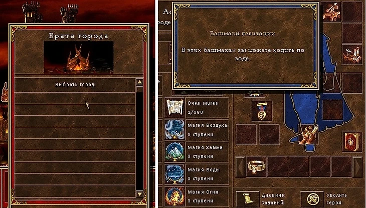 - артефакты, позволяющие перемещаться по воздуху и воде;