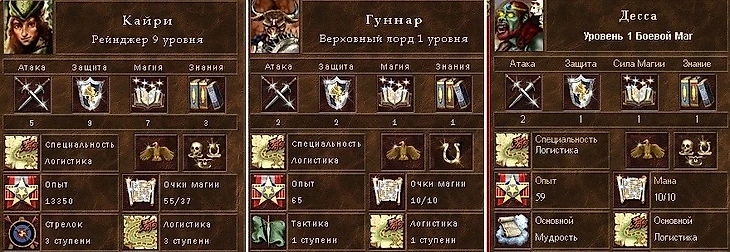 Именно не навык, а специальность "Логистика" (Киррь/Кайри из "Оплота", Гуннар из "Темницы", Десса из "Цитадели") обеспечивает +5% к передвижению за каждый новый уровень Героя. К 20-му уровню эти ребята скачут по дорогам уже в 2 раза быстрее, чем их соратники с просто Экспертным 3-й ступени навыком "Логистика" (а если добавить такие артефакты, как Перчатки, Сапоги и Накидку скорости, то дальность передвижения станет неприлично возмутительно большой). Если же в книге заклинаний у них обнаружатся "Городской портал", "Полет", "Дверь измерения"; то они и вовсе становятся просто неуловимыми. В течение одного дня они могут преодолевать огромные расстояния и аккумулировать объединенные армии из разных замков без услуг героев-курьеров, что позволяет им совершенно неожиданно появляться из ниоткуда, и сваливаться, как снег, на голову неприятеля.