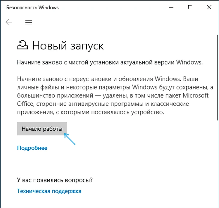 Чистая установка Windows 10 с помощью утилиты «Новый запуск» (Refresh Windows Tool)