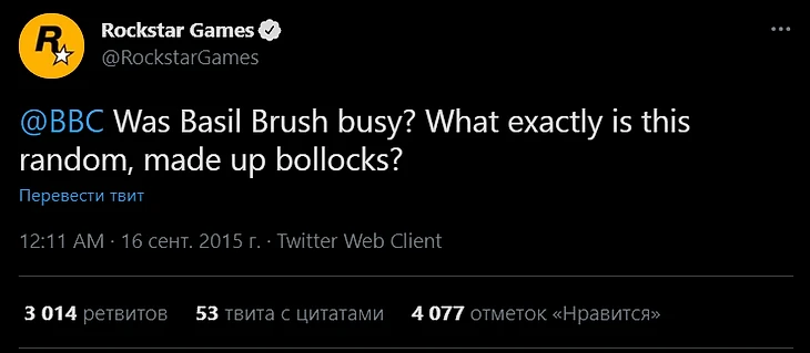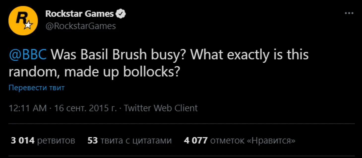 Официальный аккаунт Rockstar тоже не сдержался – фильм назвали случайной выдуманной чушью.