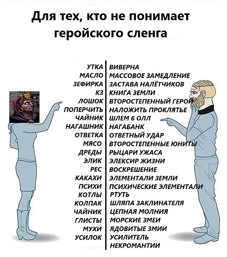 В последние пару лет Герои Меча и Магии 3 активно возвращают свою былую популярность. На Twitch транслируются десятки популярных стримов ежедневно, а на YouTube выходят всё новые и новые видео. Самый главный признак живого, набирающего популярность сообщества - постоянно обновляющийся и дополняющийся игровой сленг, понятный только игрокам и постоянным зрителям на стримах. Терминология все усложняется, и для новеньких зрителей, не являющихся "папашками", освоить ее за один день - будет почти невозможно. Обычно требуется пара десятков часов(а то и больше), чтобы научиться "шпрехать по-геройски", но я вас научу всего за пару постов отличать "муху" от "глиста" и "даблу" от "даблманы". Чтобы лучше ориентироваться, разделим новообразованные слова на несколько категорий: