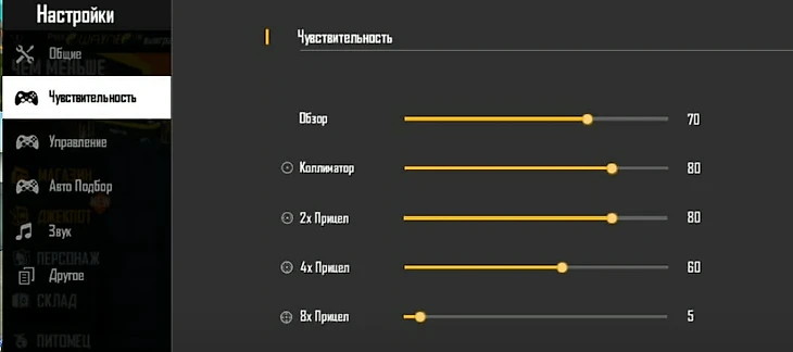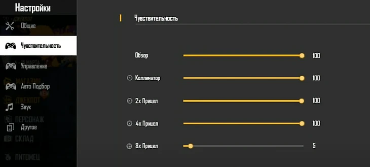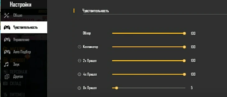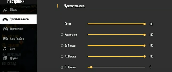 Настройки для оттяжки Free Fire