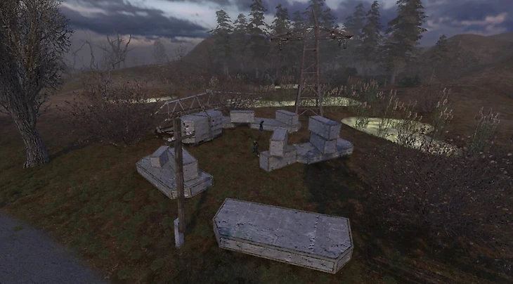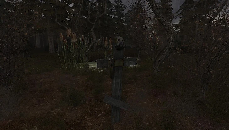 Кстати, здесь же находится атмосферная могила бандита с двумя артефактами внутри.