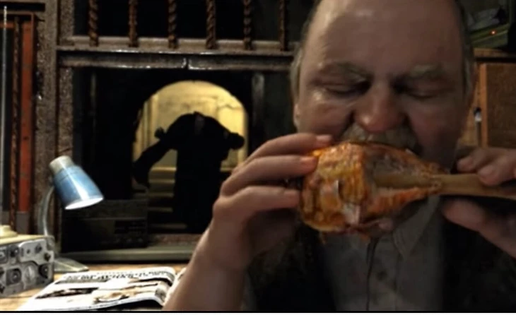 И снова вернемся к начальной сцене, где ужин Сидоровича прерывают телом Меченого. Торговец не просто так читал журналы и газеты – телевизор-то у него разбит! Вот он, в правом верхнем углу.