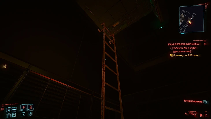 Внутри вы можете потанцевать, но лучше сразу отправиться на второй этаж. Когда вы увидите стоящего спиной к вам охранника в конце коридора в правой части здания, то вы в верном месте. Рядом с ним комната охраны, в которой еще один человек. Разберитесь с обоими (внутри есть место, где можно спрятать трупы), и идите к следующей двери. Вы выйдете к лестнице.