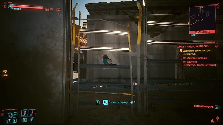 Описание квеста: «Хочешь проверить друга, возьми его в горы. Это один способ. Второй – проверь, поможет ли он тебе бежать из изолятора для мигрантов на границе Найт-Сити и Южной Калифорнии.
