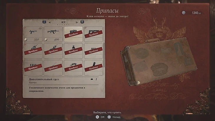 Чемодан – лучший друг охотников на Леди Димитреску и Матерь Миранду. Чем больше вы будете играть, тем больше у вас в инвентаре будет скапливаться всякой всячины: от патронов до сокровищ и оружия.