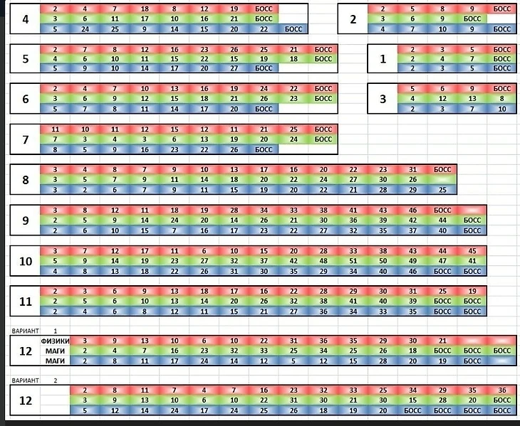 На картинках ниже показаны схемы прохождения приключений от 1 до 12 в разных вариантах