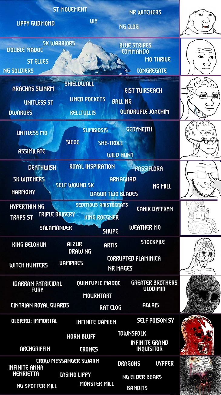 Королевства Севера (фракционная популярность 13.3%, 49.2% побед – последние данные Team Elder Blood): Witchers NR, Devotion Pincer Maneuver, Triple stripes, Shields.