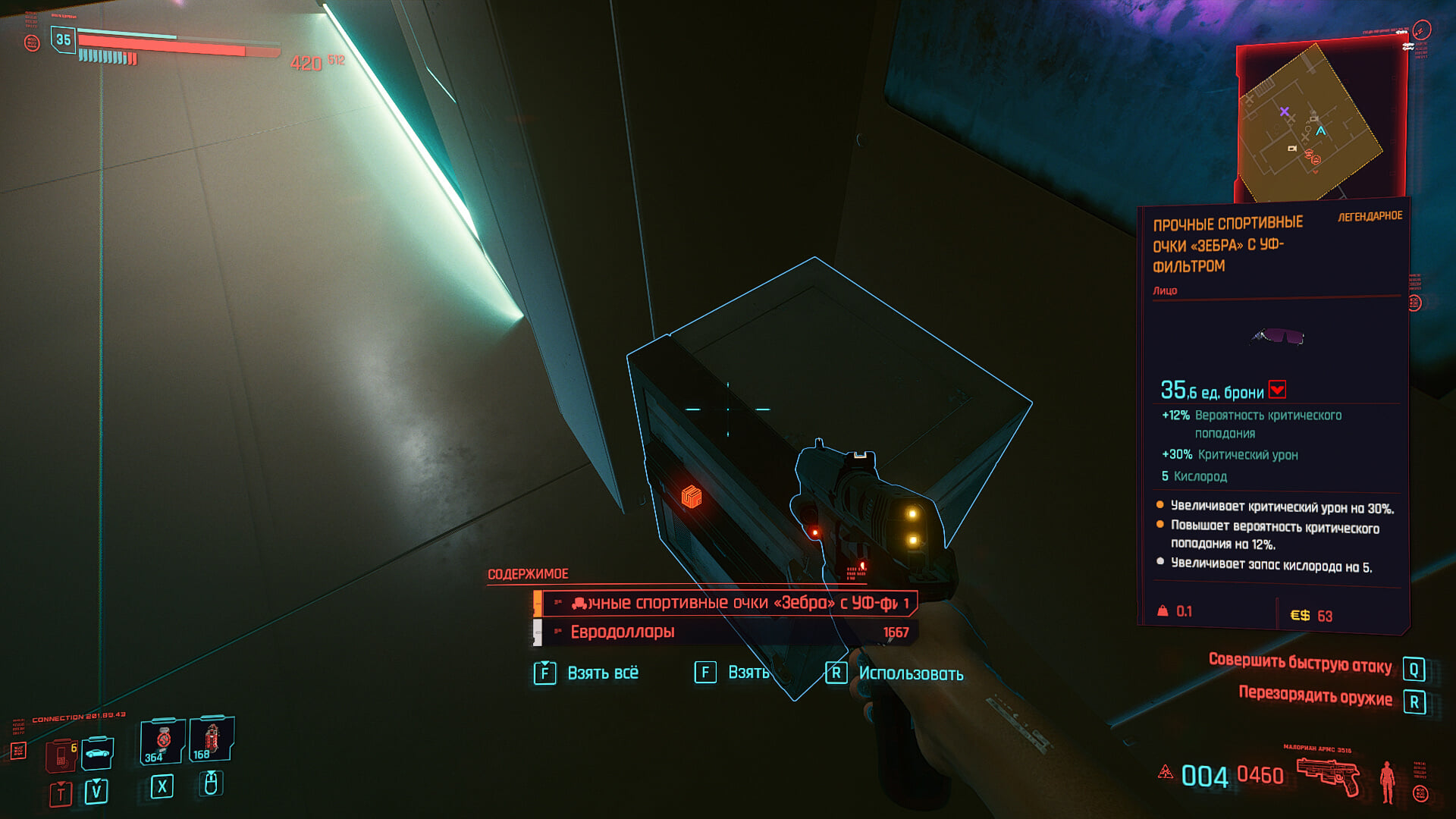 По дороге вы можете заметить через стекло сундук с легендарным предметом. Но будьте осторожны – в этой комнате на потолке турель, поэтому взломайте ее, прежде чем идти за добычей.