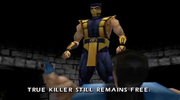 Через секунду еще живой Саб-Зиро обламывает героя, мол, настоящий убийца его родных все еще на свободе.