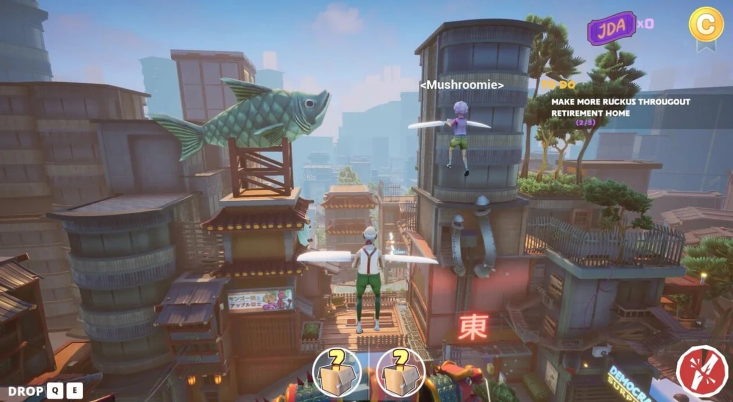 Еще одна фишка игры – в Just Die Already можно развлекаться в кооперативе до 5 человек. Позднее авторы обещают PvP режим, где базуки, топоры, фейерверки и прочие предметы окружения будут использоваться для отрывания конечностей врагам. Но пока что можно только вместе бегать по городу и уничтожать NPC.