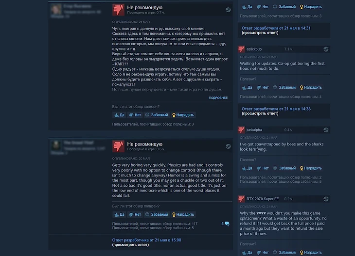 На данный момент у игры смешанные отзывы в Steam (65% положительных обзоров). Большинство игроков отмечают, что в одиночку игра слишком быстро надоедает, также многие жалуются на технические недоработки.