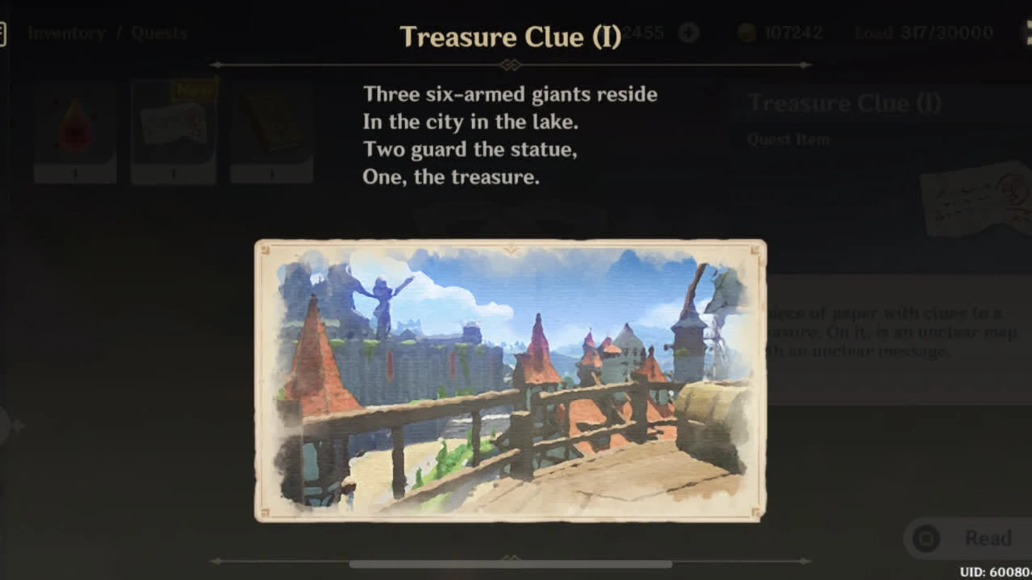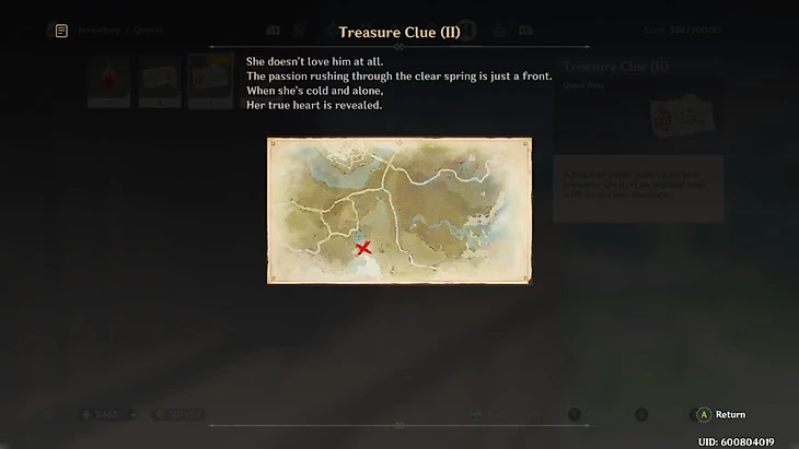 Третье сокровище спрятано у пруда Цинсю. Там вы найдете пять башен с камнем на вершине одной из них. Активируйте гео-переключатели на каждой башне и откройте появившийся сундук — ура, третье Безымянное сокровище в кармане! останется сбегать в антикварный магазин Ли Юэ (только после 21:00 по внутриигровому времени) и продать все три сокровища. Можете продавать и по одному, но за комплект вам заплатят немного больше.