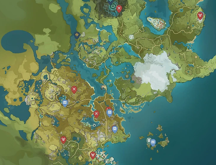 Красные метки — стражи руин. Заодно карта показывает связанные со стражами сундуки и другие активности — можете по ним пробежаться, если есть свободное время.