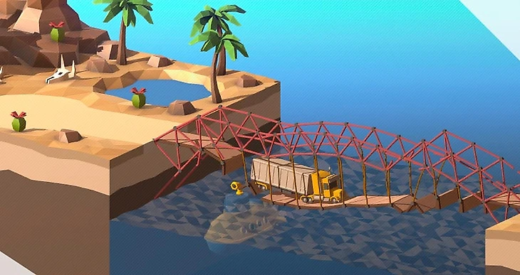Симулятор строительства мостов с видом сбоку. Суть игры – дается местность с обрывом и машинам нужно проехать, вам нужно построить надежный мост, используя доступные материалы. Последними служат: древесина, металлические канаты, вставки и другие вещи. Геймплей заключается в том, что нужно не просто проложить прямую дорогу, но и закрепить всё так, чтобы первая машина проехала, и мост остался целым для проезда других ТС. В общем, задействуя физику и геометрию будете строить мосты.