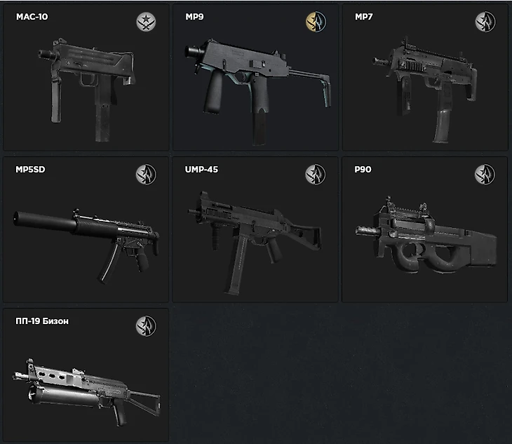 Все пистолеты-пулеметы (SMG) в Кс Го