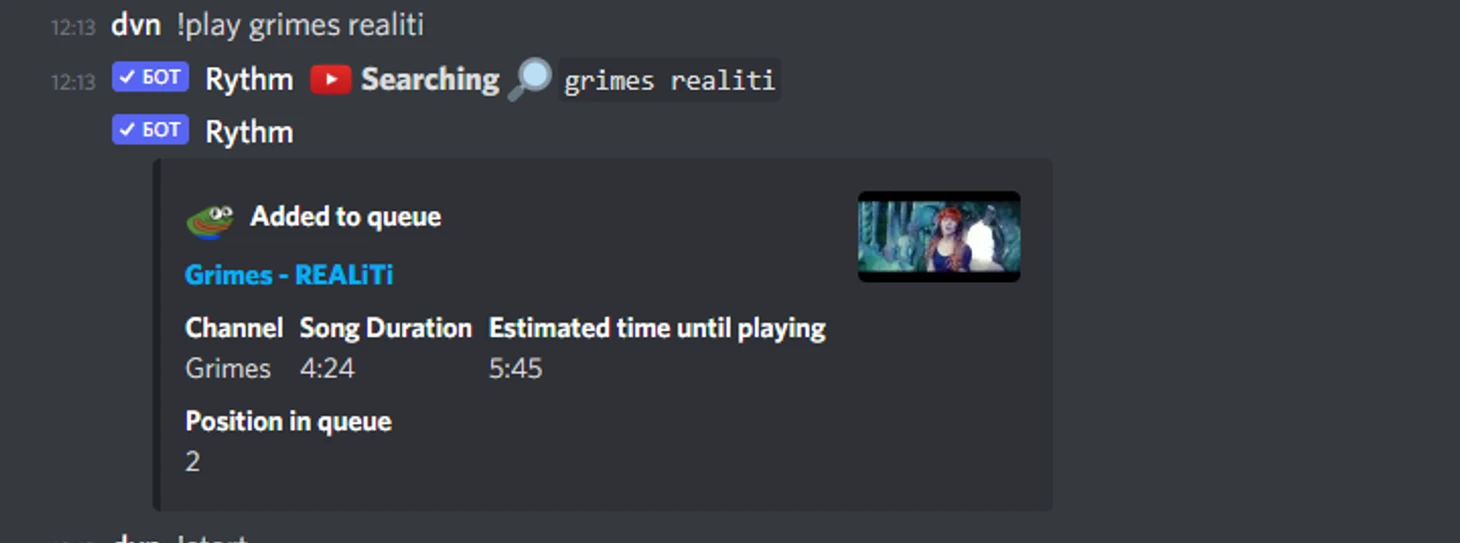 Самый популярный музыкальный бот в Дискорде – Rhythm. Разработчики заявляют, что их музыкальный бот используется на 16 млн серверов. Основная функция простая: вы и пользователи сервера можете ставить через бота музыку, указывая ссылки на отдельные Youtube-видео или целые плейлисты (также поддерживается Soundcloud). Полезные команды: !join, !play <ссылка или название>, !stop, !resume, !skip. Полный список команд показывается по команде !help. Официальный сайт: rythm.fm
