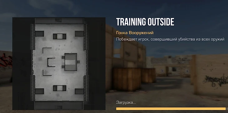 Training Outside – специальная карта, доступная в режиме гонки вооружений или командного боя, на которой можно проверить свои силы во владении оружием.