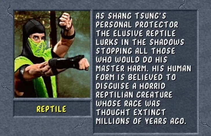 Рептилия – первый секретный персонаж в MK. Дорос от пасхалки до личного охранника Шан-Цзуна в MK II