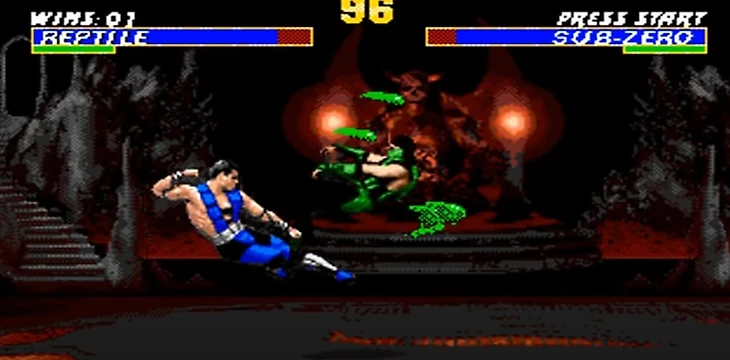 Секретные персонажи стали фишкой серии Mortal Kombat, и началось все именно с Рептилии в первой части игры. Сделать это невероятно сложно: на уровне «Яма» нужно дождаться летающего объекта у Луны, после чего одержать две «Чистых победы» подряд не используя блок! Сделав это, нужно провести фаталити на противнике – тогда вы отправитесь на арену для сражения с Рептилией.