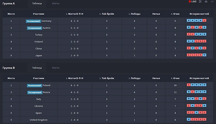 Групповой этап завершился следующим образом:
