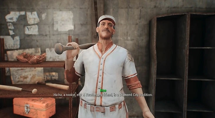 К счастью, дебоширит он только вербально – просит игрока «потеряться» и не беспокоить его. Торговцев в Даймонд-сити хватает, и возвращаться к хаму было бы странно. Но еще страннее, что Мо Кронин – это отсылка к настоящему бейсболисту, Джо Кронину, которого в США почитают как легенду. Неужели харизматичный торговец, превращающийся вечером в хама, достойный выбор для такой пасхалки?