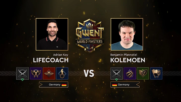 В первой игре полуфинала Masters сыграли Бенджамин «kolemoen» Пфанштиль (Германия) и Эдриан «Lifecoach» Кой (Германия), вчера неожиданно обыгравший TailBot. Во времена ОБТ оба игрока имели ключевую роль в киберспорте Гвинта, однако перед этим турниром все изменилось: Lifecoach лишь недавно вернулся в игру и имел куда меньший опыт в новых реалиях.