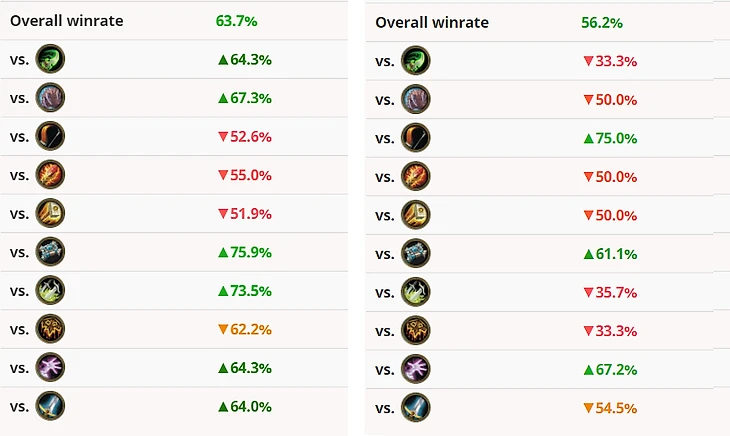 Играть против агрессивных секрет-магов, охотников, охотников на демонов и паладинов будет непросто, потому что в колодах не так много зачисток, и здоровья для розыгрыша комбинации может не хватить. Зато против контрольных и других ОТК-колод она показывает себя неплохо.