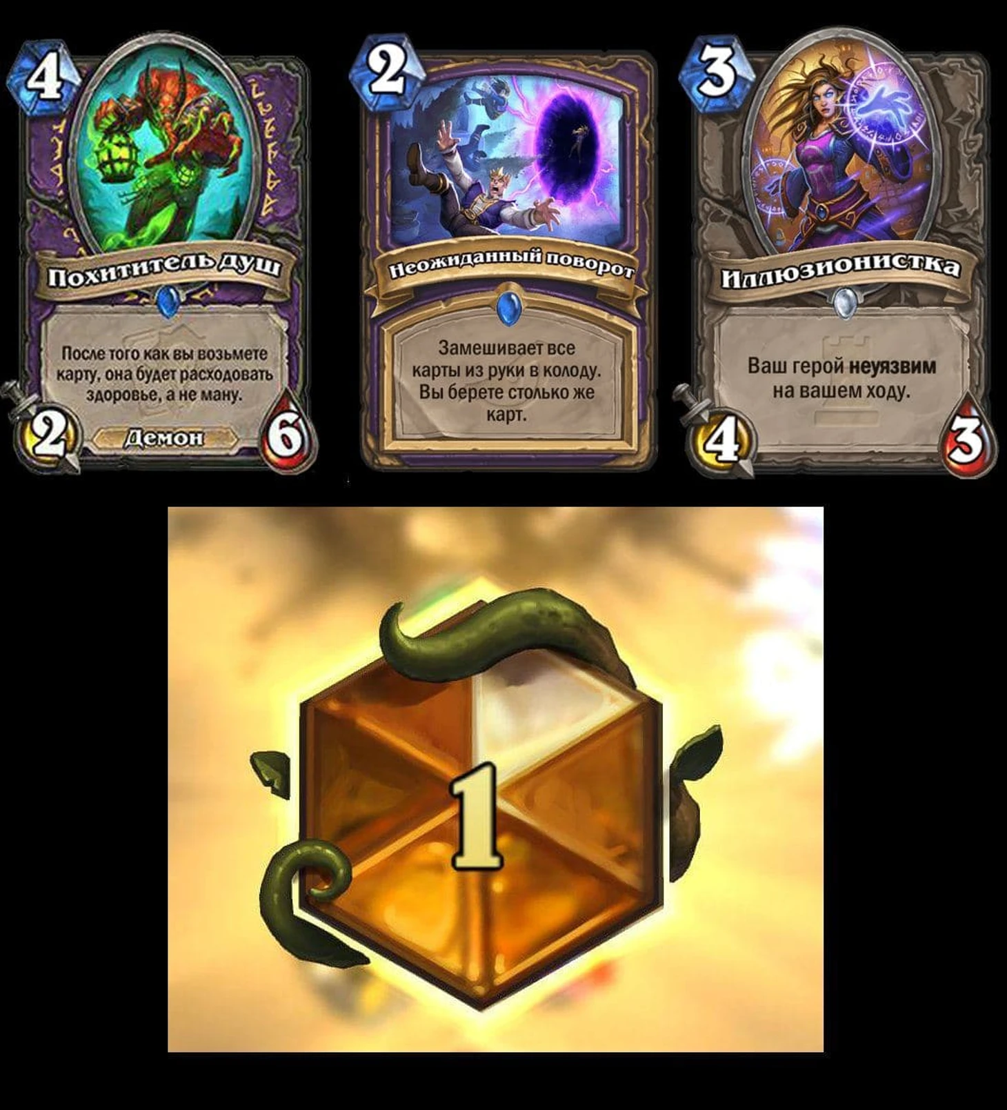 В комьюнити сразу появился мем с комбинацией новой карты «Похититель душ» – она меняет цену карты с маны на здоровье, что при наличии неуязвимости позволяет разыграть хоть всю колоду за один ход.