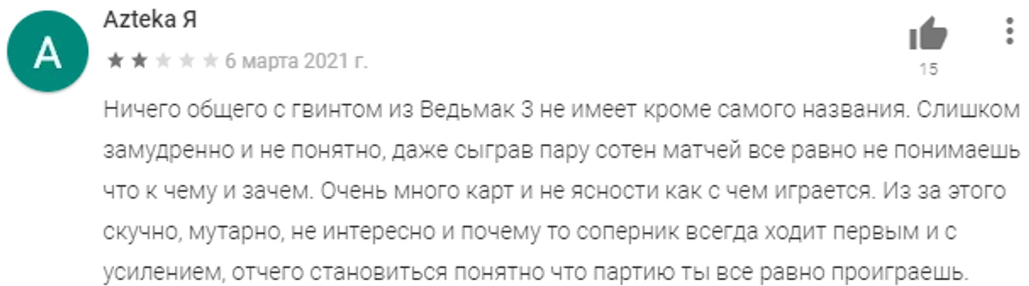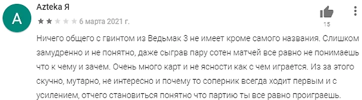 «За 15 минут я понял, что тут решает донат». Разбираем негативные отзывы к Гвинту в Google Play