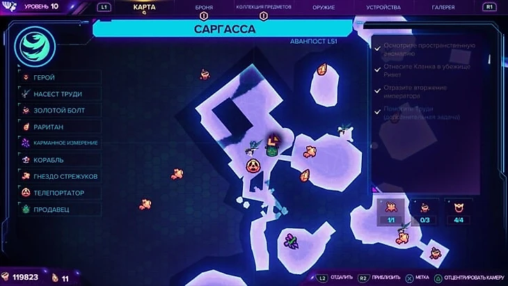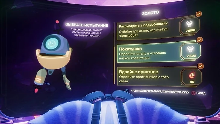 Всех робошпионов можно собрать даже после прохождения кампании – достаточно выбрать «Продолжить» в меню, после чего игра загрузится перед точкой невозврата, откуда можно отправиться на любую планету. Прогресс сбора робошпионов можно отслеживать в меню, а также по счетчику под названием каждой планеты в навигационном меню корабля.