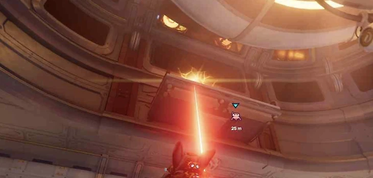 Второй робошпион в этой локации будет досягаем только после того, как вы получите особый хук для желтых платформ на планете Торрен-4. Используйте открытую способность справа от фиолетового портала-входа в бар Зурки – персонажа катапультирует прямо на платформу, где находится робошпион.
