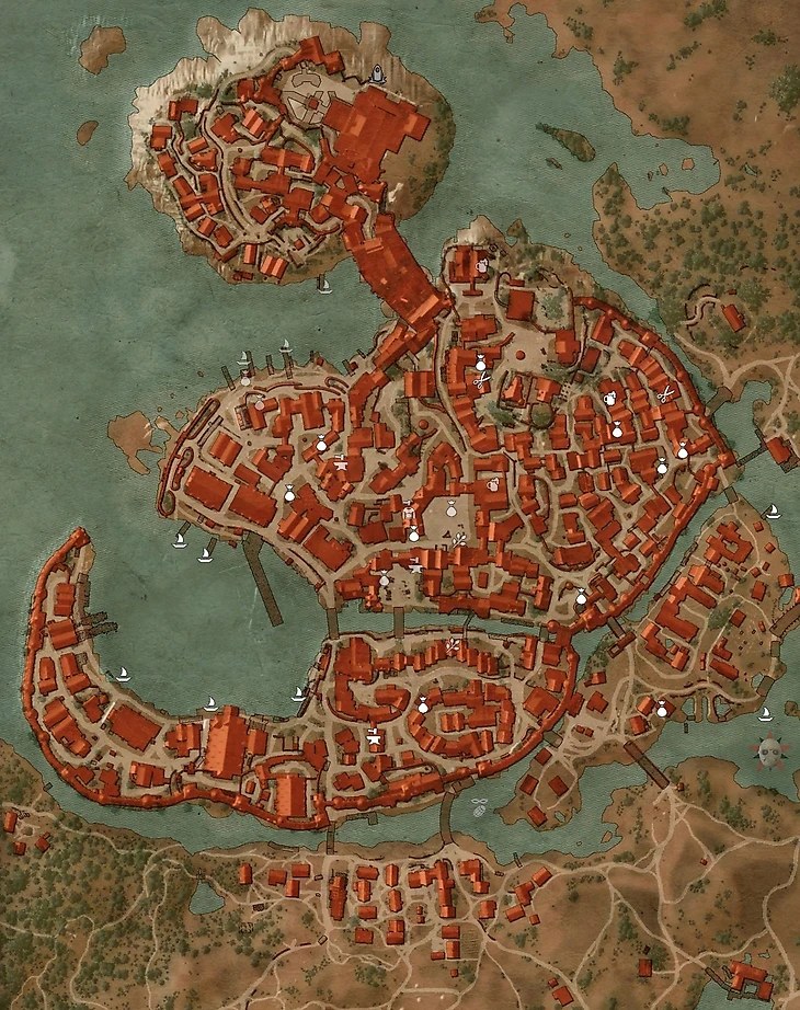 Только столица Солитьюд может называть себя городом, потому что там три разных района. Но он жутко проигрывает Новиграду с пятью районами – просто сравните две карты.