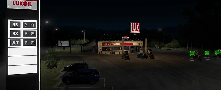 Мод Real European Gas Stations Reloaded для Евро Трак Симулятор 2 заменяет стандартные бензоколонки, добавляя им реализма. Теперь вы будете заправляться на заправочных станциях реальных компаний (в том числе, например, и «Лукойла» или «Газпром нефти»).