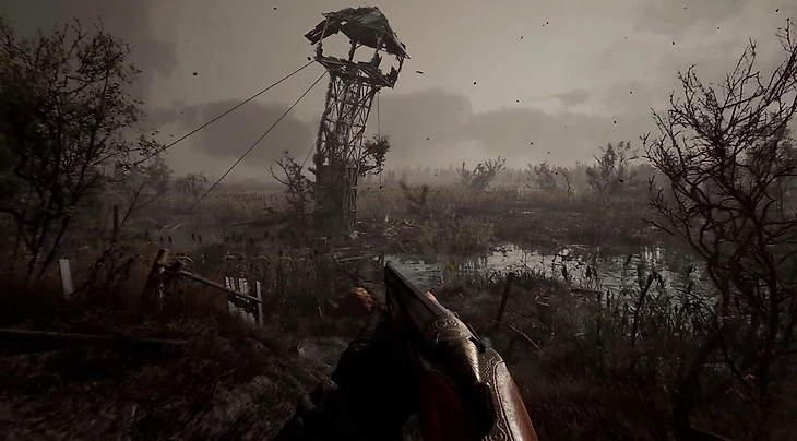 Локация «Болота» перешла прямиком из «Чистого Неба». Многое изменилось, но башня стоит на месте.