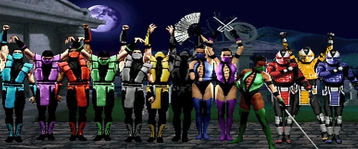 Ниндзя добавили максимально экономично – движения всех бойцов записал один актер. Позднее разработчики просто раскрасили их в нужные цвета и раскидали приемы по различным бойцам. То же самое было у киборгов и у девушек в масках (Джейд, Китана, Милина).