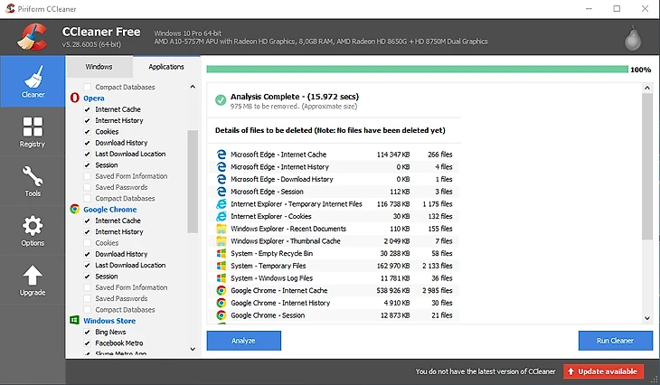 Вы удивитесь, как много памяти могут съедать Chrome, Opera и другие браузеры с помощью сайтов вроде Ютуба, ВК, различных социальных сетей и других интересных интересностей. Здесь хорошо подойдет знакомый многим CCleaner. Только убедитесь, что не удаляете сохраненные пароли, для этого нужно всего лишь не ставить галку в пункте «Сохраненные пароли». Обычно освобождается около 1-2 Гб. Скачать программу можно здесь.