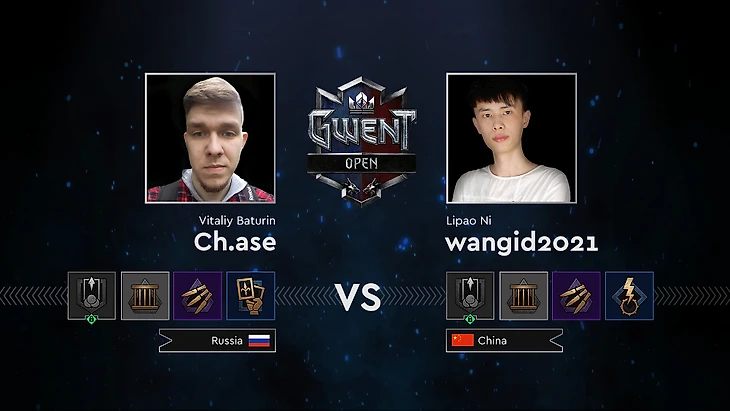В первой партии Ch.ase взял колоду Севера, wangid2021 – Нильфгаард. Ch.ase отдает первый раунд, китаец решать перевести игру в третий. Оба игрока разыгрывают свои сценарии, но wangid2021 находит вообще все легендарные карты, из-за чего побеждает. (0:1)