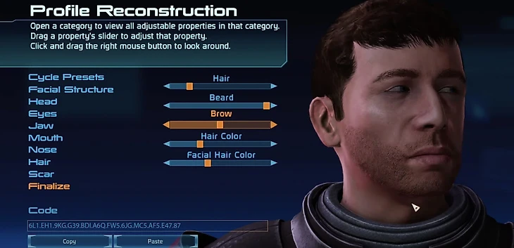 В начале каждого прохождения Mass Effect (теперь в версии Legendary Edition) я открываю редактор персонажа... и тут же вспоминаю, что лучше играть за стандартного Джона Шепарда. Мне в целом не нравятся лимитированные опции настройки внешности, но «Борода» в редакторе – просто какая-то шутка.