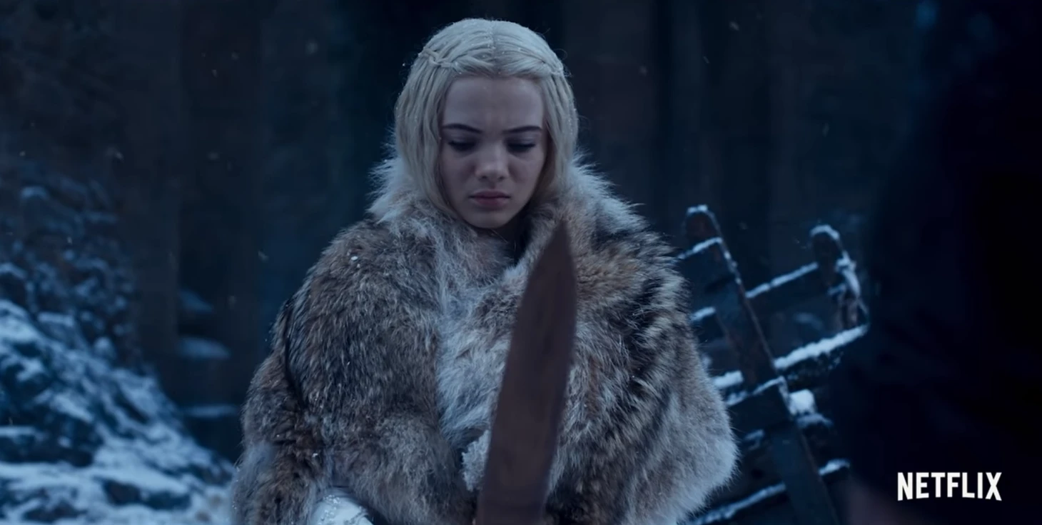 Тем временем голос за кадром спрашивает Геральта: «Что, если твоя принцесса – больше, чем ты рассчитывал?». В дальнейшей нарезке кадров мы видим, как Геральт с кем-то сражается, а Цири встречает посреди леса человека с рыжими волосами. Мы уже знаем, что у Трисс с первого сезона каштановые волосы, но после Содденской битвы она получила много серьезных ран, и поэтому могла изменить внешность. Также видны руки Геральта и девушки в зеленом платье – вероятно, это тоже может быть Трисс. О ней так много догадок, потому что она должна приехать в Каэр Морхен для обучения Цири.