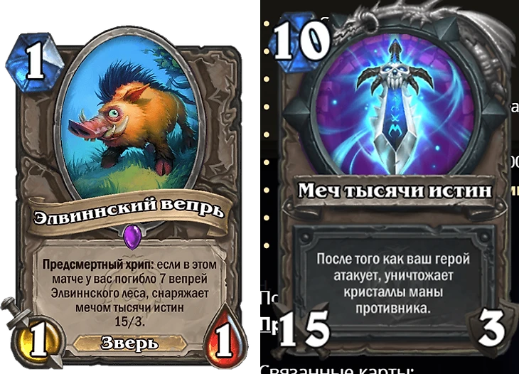 Карта подойдет не всем колодам. Вероятнее всего, лучше всего она будет смотреться в Вольном режиме: Охотник с раскопками копий зверей, Разбойник с замешиванием и добором копий или Жрец на воскрешении предсмертных хрипов с квестом справятся с разыгрыванием 7 вепрей без опасения за жизнь.