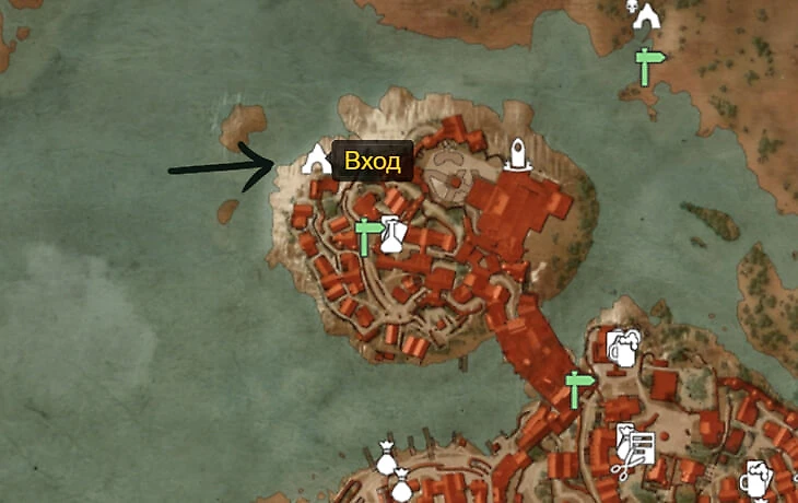Если выйти из крепости, спуститься и перейти через реку, то можно увидеть небольшой мостик. Перейдите на другой берег, и вы увидите железный рудник. Его охраняет элементаль, поэтому подготовьтесь к бою тщательно. После его убийства можно спокойно забрать чертеж отличных перчаток.