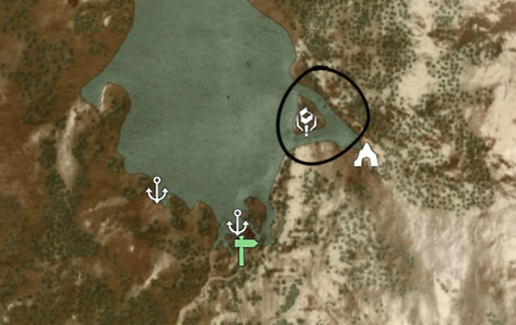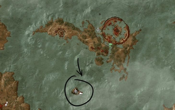 На юго-западе от Коломницы находится маленький островок с руинами башни (или маяка). Вам нужно доплыть туда от ближайшей точки перемещения, сразиться с парой утопцев и взять чертеж из сундука.