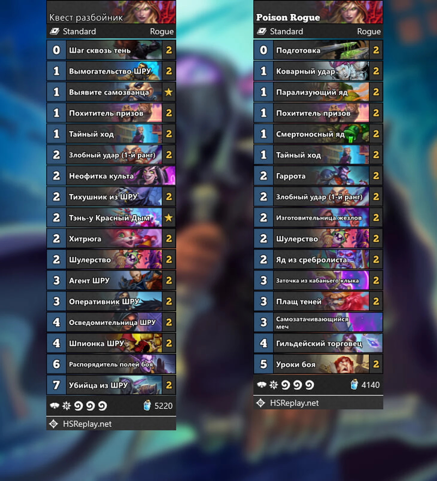 А знаете, какая колода разносит квестовых магов абсолютно без шансов? Разбойник на ядах – выбор для тех, кому надоело видеть Джайн в каждой второй партии. Правда, у разбойников кошмарный винрейт против шамана и охотников, поэтому игрокам с небольшим бюджетом лучше выбрать другую колоду.